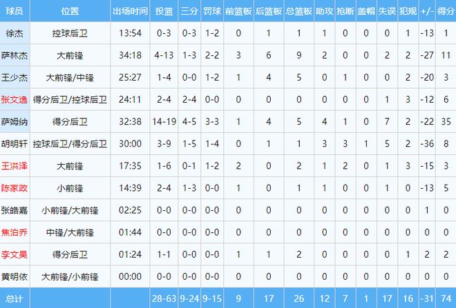 本场比赛,北京队进攻端多点开花,12名上场球员中有11人完成得分。其中,杰曼贡献全队最高的22分,另有9助攻5篮板。斯佩尔曼凭借第一节近乎完美的表现,得到21分10篮板。曾凡博强势复出,贡献18分3助攻2抢断。雷蒙贡献11分。广东队方面,萨姆纳个人独舞,空砍35分,难挽败局。