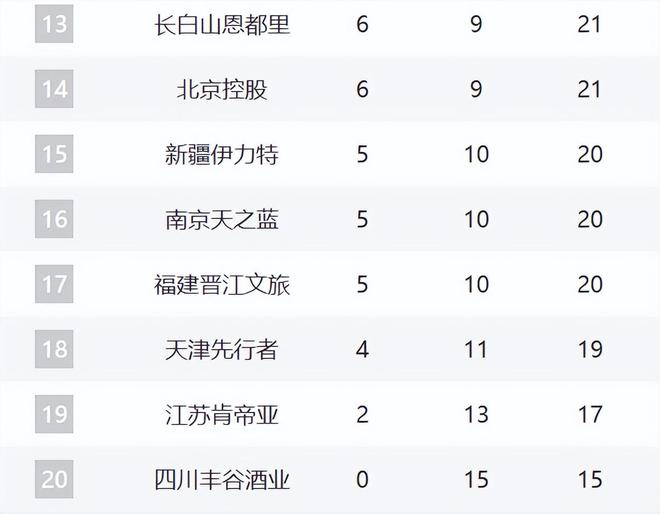 广州则排在第12,他们这轮溃败浙江,但本赛季晋级季后赛的可能性依然存在。