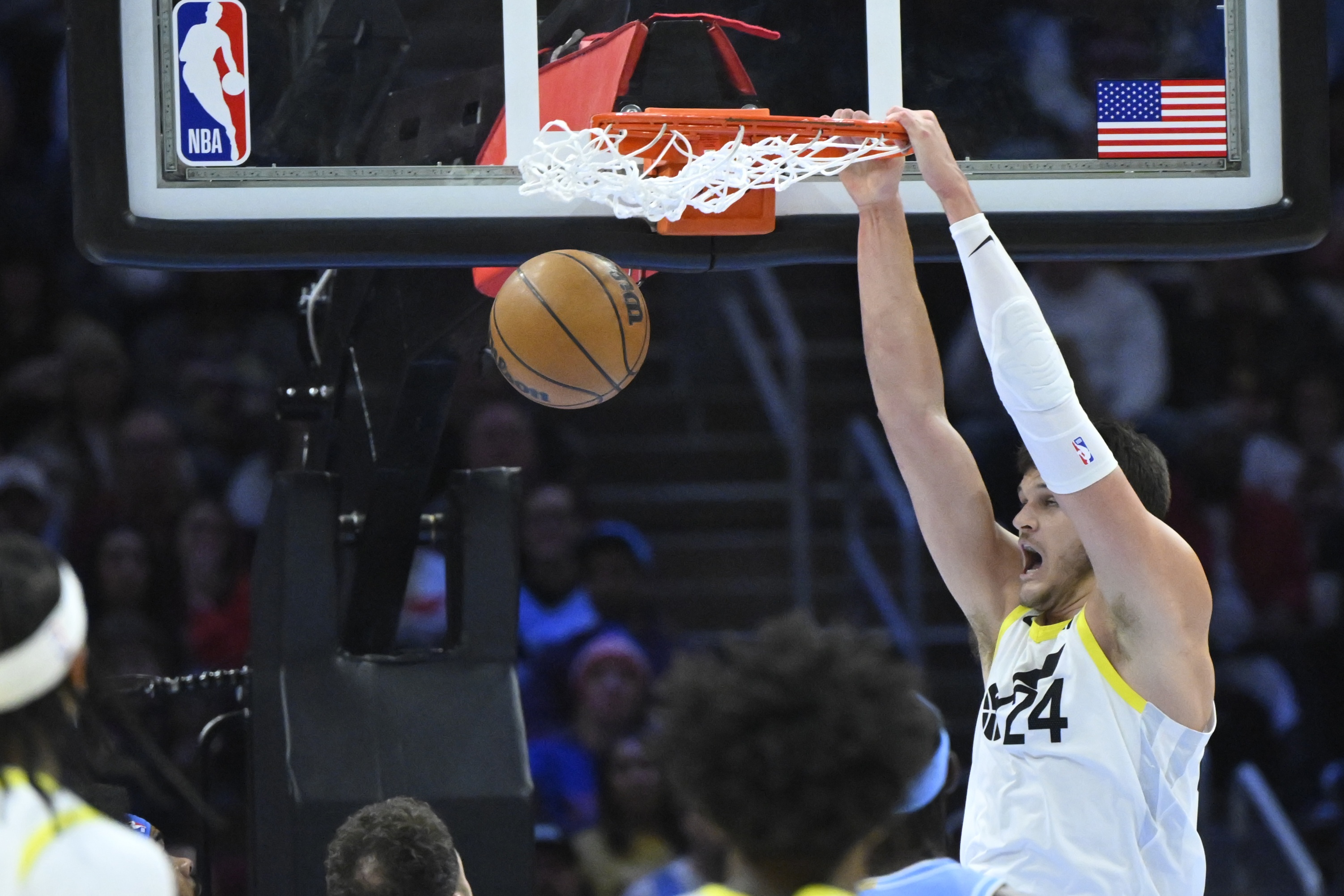 本场比赛,爵士内线凯斯勒表现不错,进攻高效多次打进关键补篮,但球队还是惨遭逆转,在34分钟的时间里,投篮10中8,三分球1中0,罚球4中3,拿到19分13篮板2助攻1盖帽的数据,正负值+7。