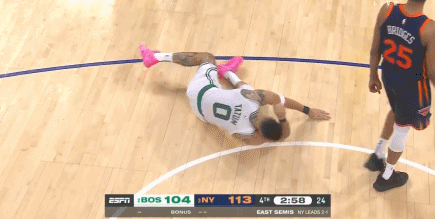 昨天在与尼克斯的G4比赛中,塔图姆在一次无对抗争球中出现伤病。