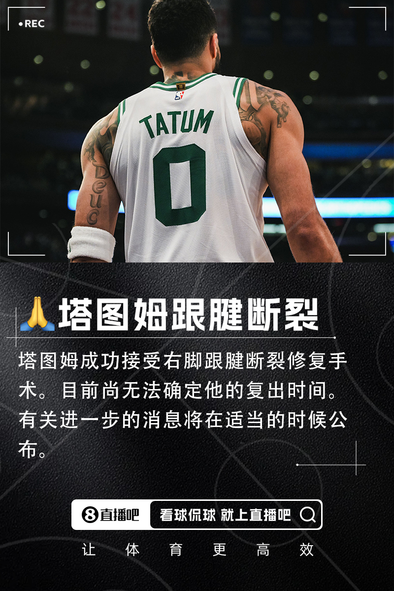 官方:塔图姆成功接受右脚跟腱断裂修复手术尚无法确定复出时间