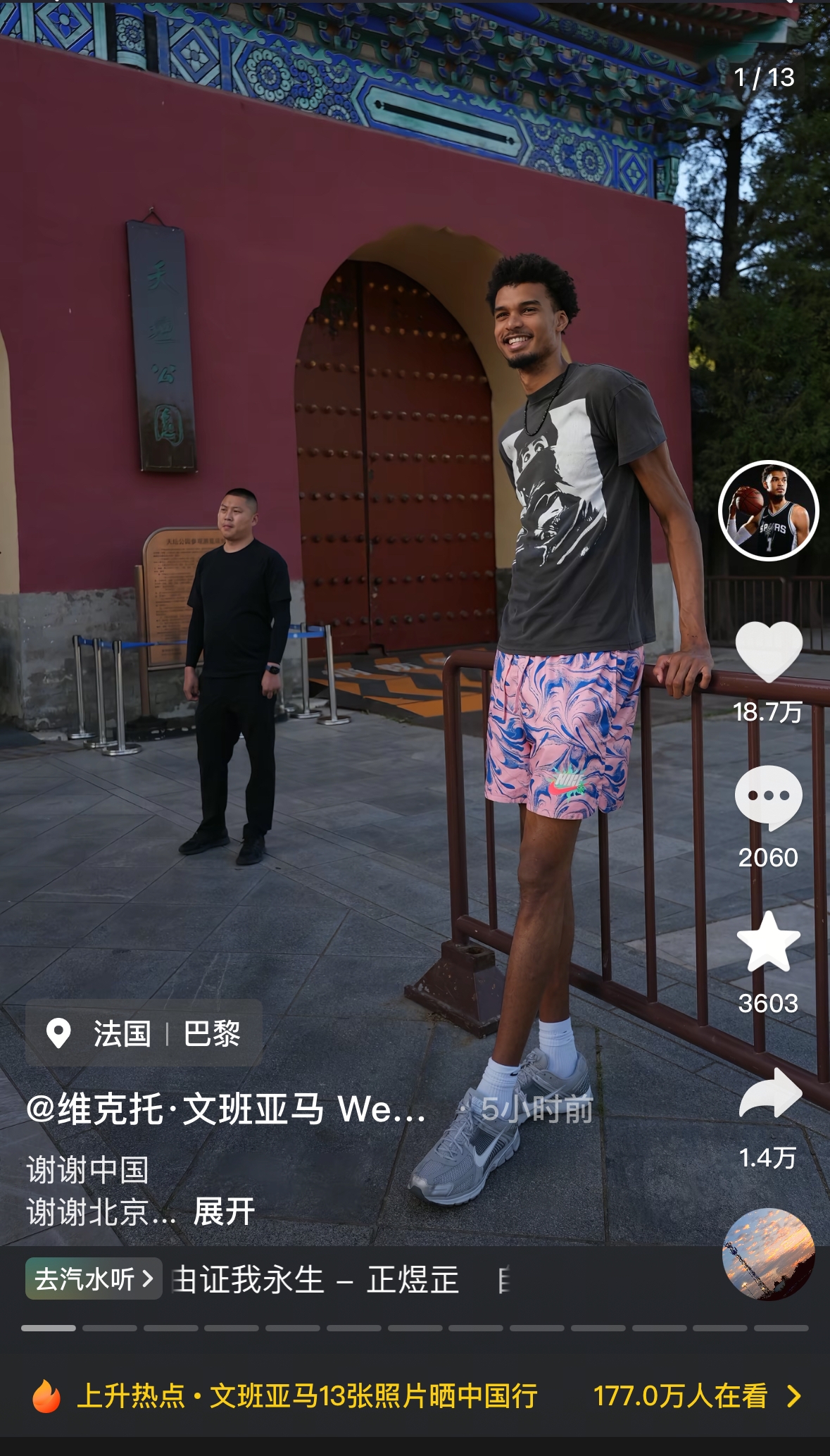 文班打中文晒中国之旅:谢谢中国谢谢北京谢谢少林寺谢谢大家