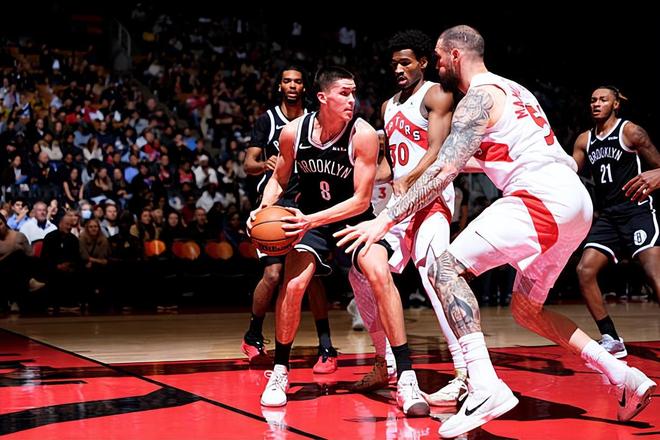 在季前赛最后一战布鲁克林篮网对阵多伦多猛龙的比赛中,篮网的后场新秀叶格尔-杰明(Egor Demin)完成了自己在季前赛中的首秀。杰明在18分47秒的出场时间内投篮4中3,三分线外3中2,罚球7中6,得到了14分5篮板1助攻1盖帽的数据,还有2次失误和1次犯规。虽然篮网输掉了比赛,但是杰明的表现令人眼前一亮,他的得分能力看起来相当不错,他在外线投篮方面的表现更是远超大家的预期,而且他在防守端也能够提供一定的帮助。至少在这场比赛中,他的整体表现是颇具亮点的,也算得上超出大家预期的。