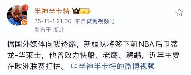 新疆男篮签约第四外援,1米96双能卫加盟,NBA曾场均9.7分3.5板
