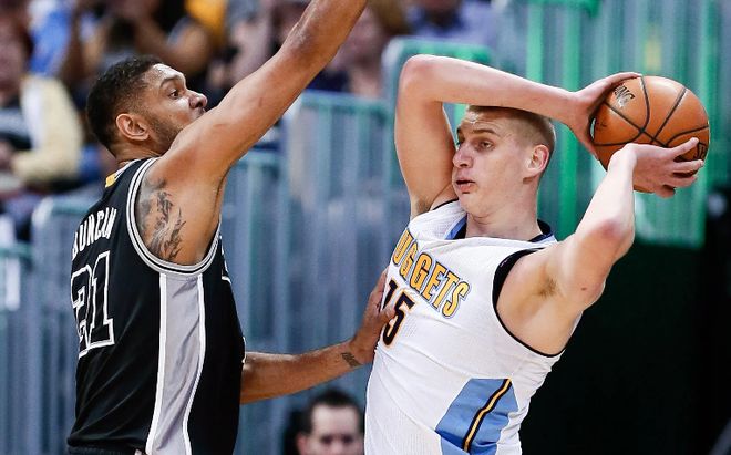 正是这种与生俱来的沉稳,让约基奇能专注于比赛本身。作为新秀,他在对阵邓肯的比赛中表现出色,砍下23分12篮板,不过当晚掘金队最终不敌马刺队。