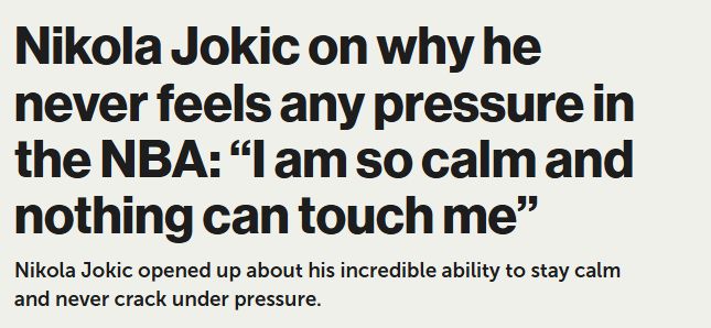 不同于其他巨星,约基奇从未在高压和比赛关键节点崩溃过。其他能达到同等成就的球员往往需要花费时间和精力磨练这种心态,但约基奇从小就自带这份沉稳。