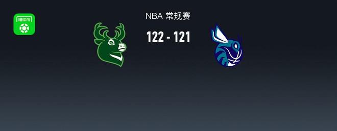 第四节雄鹿字母哥拿下12分,黄蜂迈尔斯-布里奇斯拿下10分,最终雄鹿122-121战胜黄蜂