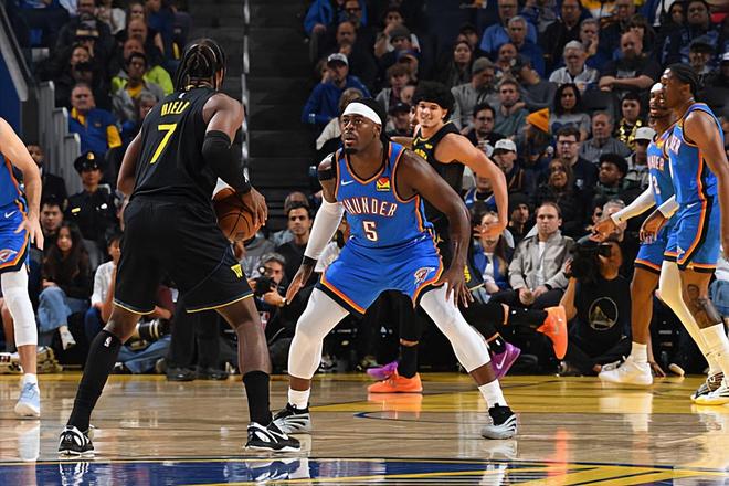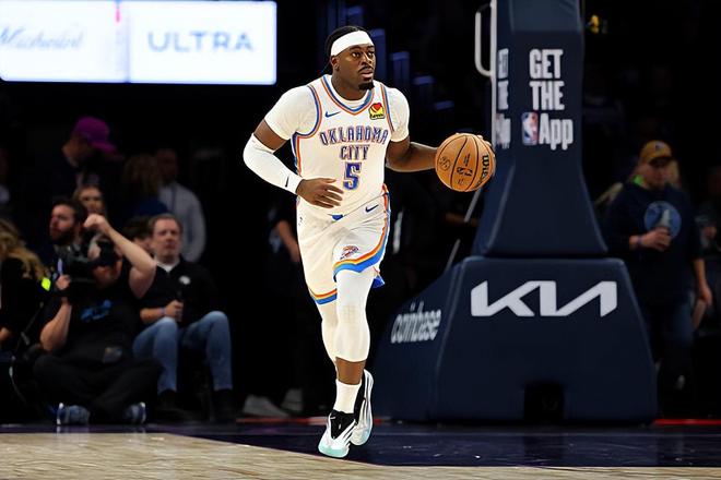本场比赛中,雷霆的先发侧翼大闸吕冈茨-多尔特(Luguentz Dort)的整体也是有了明显的提升。多尔特全场出场26分13秒,投篮5中4,三分线外4中3,得到了11分3篮板1抢断的数据,还有2次犯规,正负值更是达到了全场最高的+33。多尔特在防守端依然是保持了自己应有的水准,依然是有着超强的个人防守能力,保持了应有的防守强度,并且起到了很好的效果。最关键的是,多尔特在本场比赛中算是将自己在进攻端应有的才能发挥了出来,他的进攻效率相当不错,他在三分线外更是给对手制造了不小的威胁。在出手次数不多的情况下,他也是得到了不少分数。本场比赛中多尔特的表现算得上是攻守兼备,他的一系列出色表现也是为球队的这场大胜提供了巨大的支持。