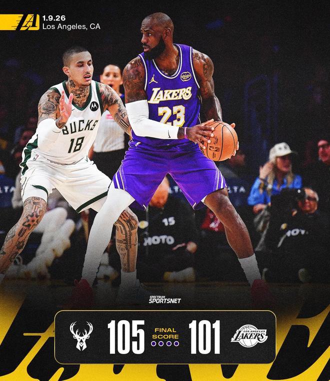 对于湖人球迷来说,这绝对是无比难受的一天,好好的一个周末硬是让湖人给为了坨大的,主场迎战雄鹿,湖人最终以101比105不敌对手,遭遇两连败,在输掉这场比赛之后,湖人的战绩降至23胜13