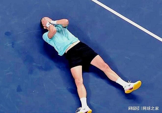 最后来猜一猜认一认。下面这张图片是一位球员获胜之后掩面倒地庆祝。不作提示,您能认出他是谁吗?