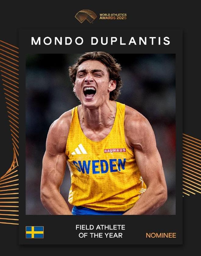 10月20日,世界田联公布了2025年男子/女子田赛项目年度最佳运动员初选名单各5人,将从中选出各2人成为最终的候选者。名单如下:男子:杜普兰蒂斯(瑞典、撑竿跳高)弗尔拉尼(意大利、跳