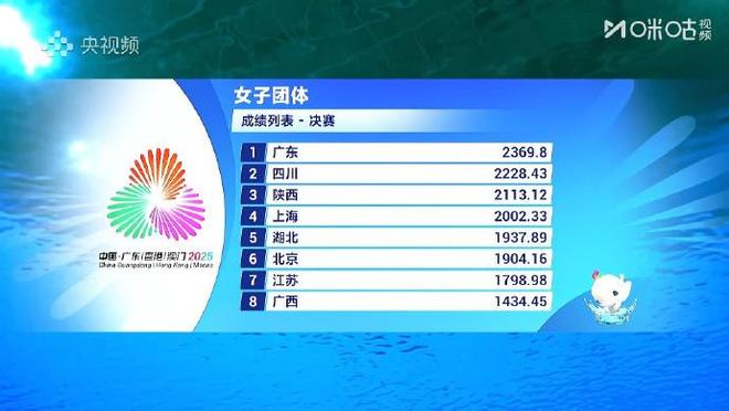11月2日, 全运会跳水女子团体,经过了四个项目的争夺,广东队绝对优势夺得金牌,成功实现该项目的卫冕。