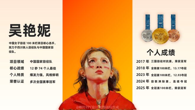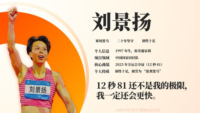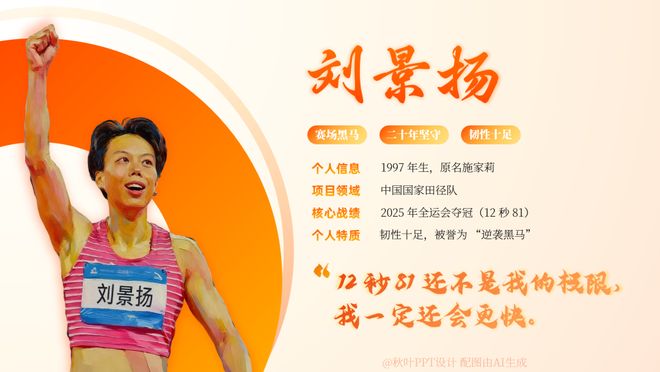 点击关注【秋叶AIPPT】发送【1】领取秋叶独家精美 PPT 模板作者:萌萌编辑:萌萌哈喽大家好,这里是爱吃瓜更爱干货的秋叶编辑部!最近全运会女子 100 米栏决赛中,上演了一场神仙打架