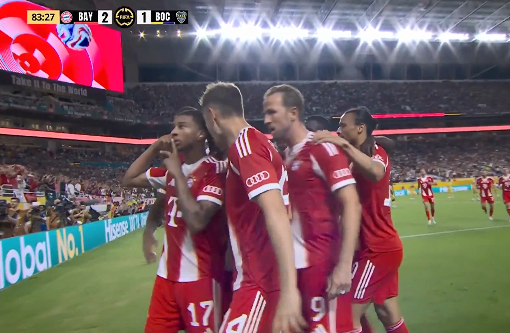 06月21日讯 世俱杯小组赛C组第2轮,拜仁对阵博卡青年。比赛第84分钟,奥利塞弧顶推射破门,凯恩做球完成传射,拜仁2-1再度领先博卡!