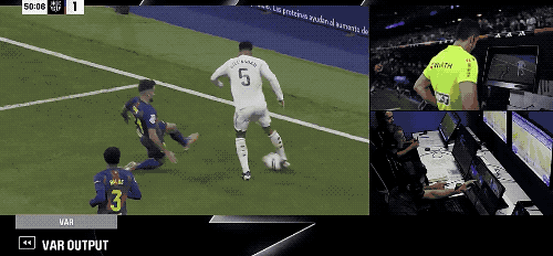 此外,国家德比前亚马尔的言论引发了极大的争议,成为焦点。开场之后,维尼修斯倒地,裁判认定亚马尔犯规送上点球,VAR介入,慢镜头可以看到,是维尼修斯踢到了亚马尔,点球取消。