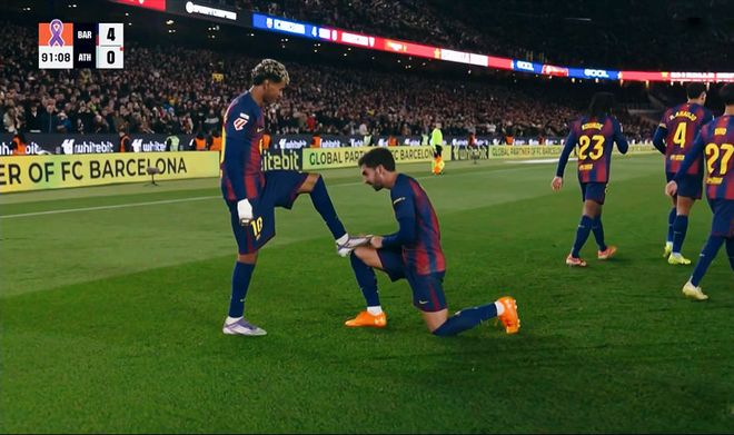 为了几天后的欧冠联赛,弗里克不断换下主力球员,德罗、贝尔纳尔等小将先后登场。第80分钟,毕尔巴鄂竞技利用定位球的机会,险些洞穿巴萨的球门,幸亏霍安加西亚的奋力扑救。随后,伤愈归来的拉菲尼亚登场,引发全场球迷的起立鼓掌。最后时刻,亚马尔中场连过数人,送出一脚手术刀直塞,费兰托雷斯单刀破门,4:0!