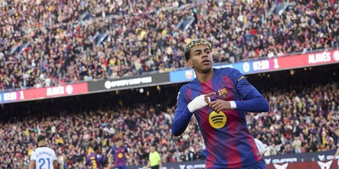 西甲:31!巴萨主场逆转阿拉维斯,奥尔莫双响+亚马尔破门