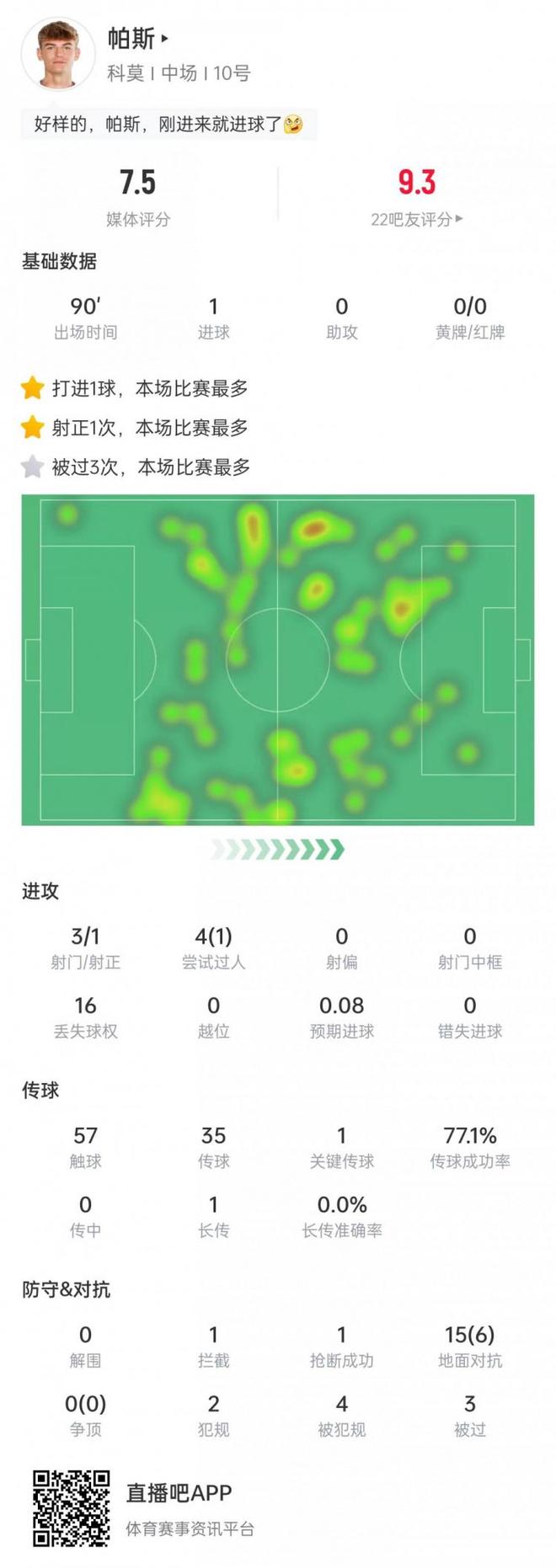 9月16日讯 意甲第三轮比赛,科莫主场1-1战平热那亚。此役尼科-帕斯为科莫踢满全场,远射破门,他当选本场比赛最佳球员。