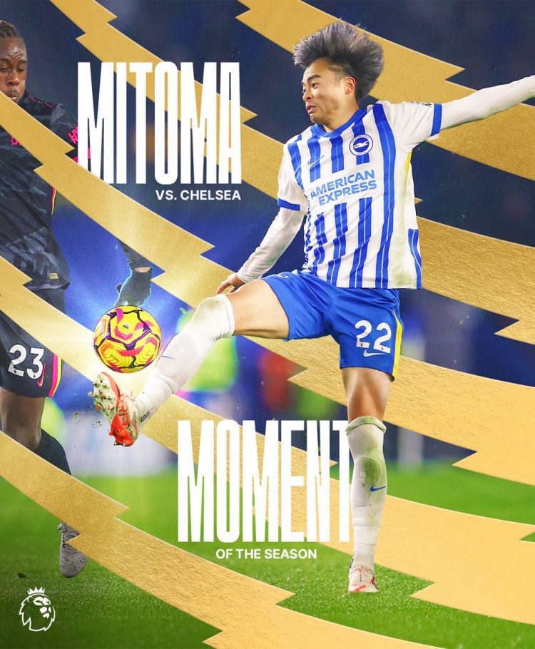 6月8日讯 布莱顿官方消息,三笘薰对切尔西破门被球迷票选为赛季最佳时刻。