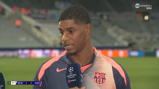 在欧冠联赛阶段首轮上演梅开二度帮助巴塞罗那客场2-0击败纽卡斯尔联之后,拉什福德接受了来自TNT体育的采访。