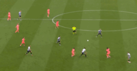 就在那一瞬间,我感觉到了一个空隙,我眼角的余光看到了远门柱。所以,我想就干脆试试直接射门吧。很明显,前面的防守球员想封堵射门,所以我想我肯定要稍微把球挑起来一点。而且,当你背对球门移动的时候,如果让球保持在低处会很难产生力量。所以我想,让我试试瞄准高处,然后我知道,当我踢中球的时候,门将要扑出这个球会非常困难。