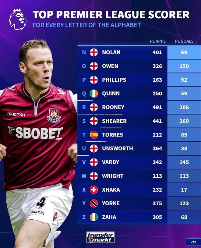 - 北京时间10月17日,德转依照球员姓氏首字母列出了英超历史进球数最多的26名球员,阿圭罗、杰拉德、亨利、热苏斯...发表于: 10-17 14:36