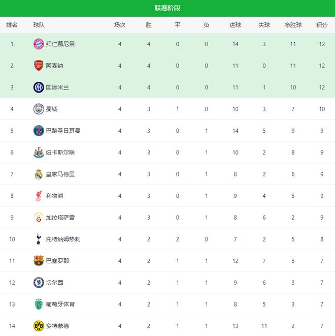 - 北京时间11月6日,25/26赛季欧冠联赛阶段第4轮比赛全部完赛,在最新的欧冠积分榜上,直通淘汰赛的前8球队中英超独...发表于: 11-06 14:43