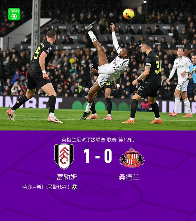 富勒姆10桑德兰,劳尔希门尼斯一击制胜,丘库埃泽送助攻