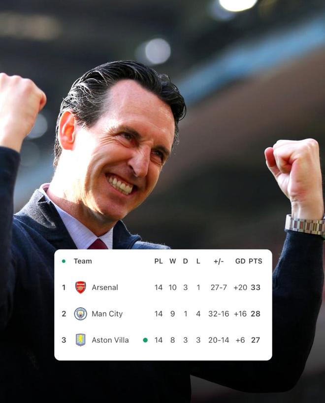 从5轮不胜到9轮8胜,大马丁踢疯了!维拉43,埃梅里冲上英超第三