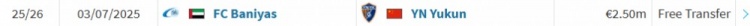 当前身价250万欧!德转信息显示布尔卡自由身加盟云南玉昆