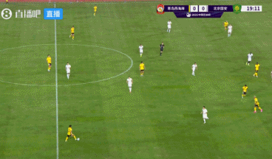 第19分钟,青岛西海岸中线附近的抢断,直塞找右路阿齐兹!阿齐兹杀入禁区内右侧,左脚打门被侯森抱住↓