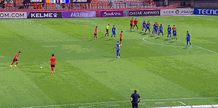 第10分钟,江原FC在前场获得定位球,小禁区里加布里埃尔抢点破门,但由于越位在先被判无效。
