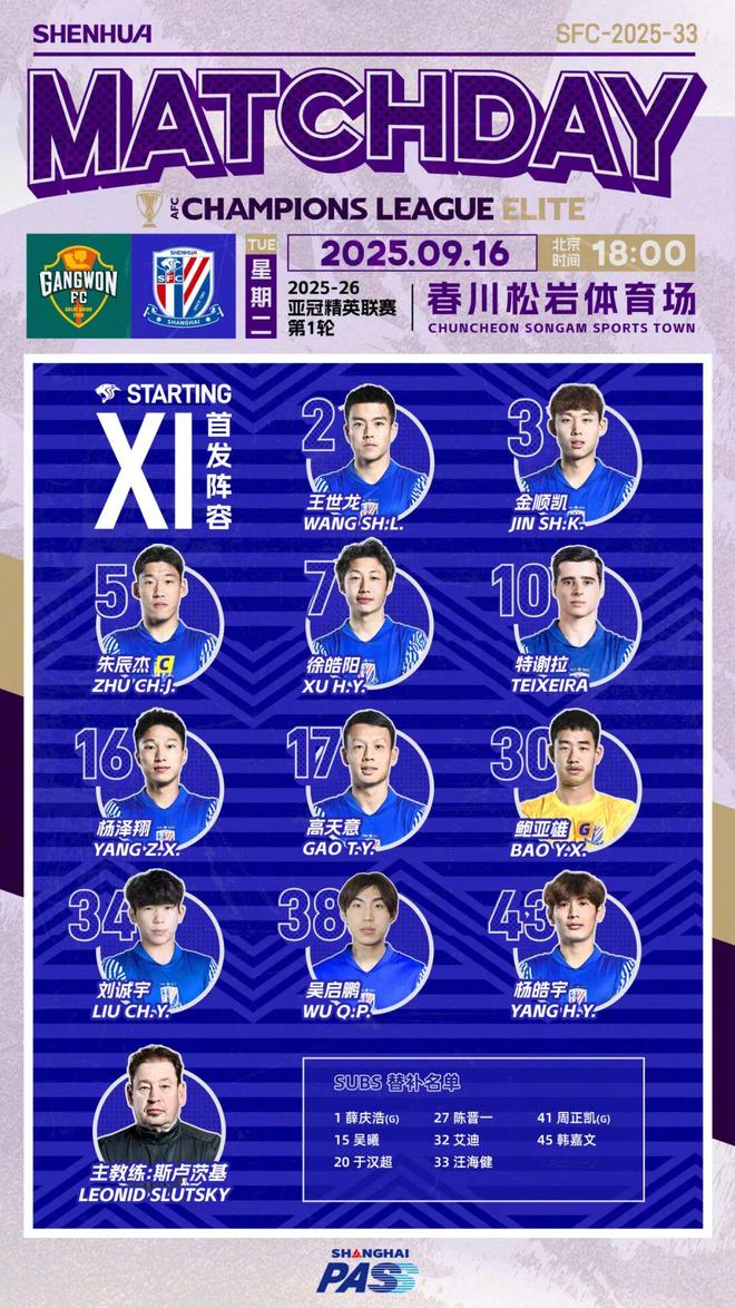2025-26赛季亚冠精英联赛,今天迎来了东亚区第一轮的争夺,中超球队上海申花前往客场挑战江原FC。特谢拉上半场伤停补时的破门为球队首开记录但并没有给球队带来胜利,最终上海申花在客场1-2不敌江原FC,无缘本赛季亚冠开门红。