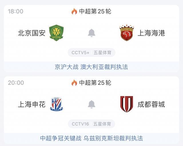 今晚中超联赛第25轮将上演两场“天王山”战,经历周中不如意的亚冠之旅后,中超前四迎来捉对厮杀,18:00北京国安vs上海海港,20:00上海申花vs成都蓉城。北京国安vs上海海港主裁:亚历