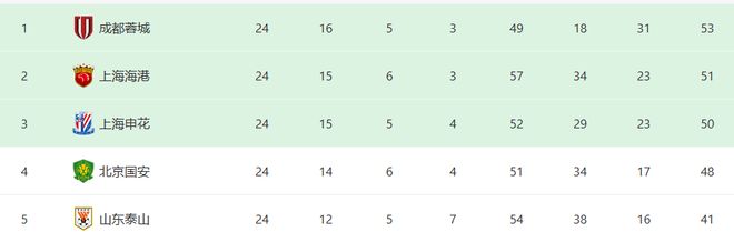 成都蓉城这个赛季虽然阵容捉襟见肘,队内矛盾也危机四伏,但球队在韩国教头徐正源的带领下却依旧表现强势,前面24轮过后,他们16胜5平3负积53分,后来居上抢占了中超领头羊之位;而上海申花却似乎有点高开低走,特别是最近一段时间,他们更是状态低迷,最近6轮中超仅仅取得了1场比赛的胜利,目前的积分排名已经滑落到了中超第3位。