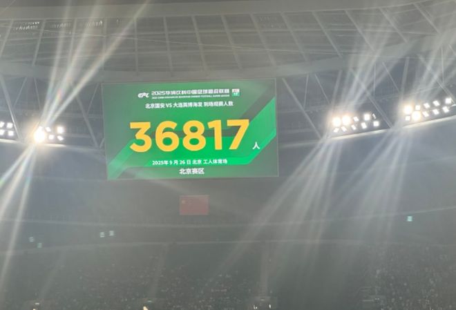 雷速体育9月26日讯 在今晚进行的中超第26轮北京国安对阵大连英博的比赛中,现场大屏幕显示本场比赛上座人数为36817人,这是本赛季北京国安主场上座率的新低。