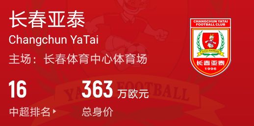 长春亚泰363万欧、青岛海牛366万欧、梅州客家393万欧、深圳新鹏城623万欧
