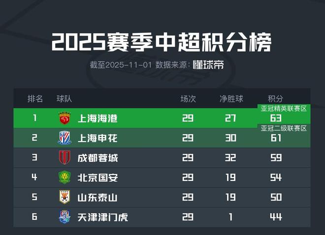 - 在中超第29轮,成都蓉城主场告负,海港、申花双双取胜。在只剩1轮的情况下,上海海港以2分的优势领先于申花。在中...发表于: 11-01 09:07